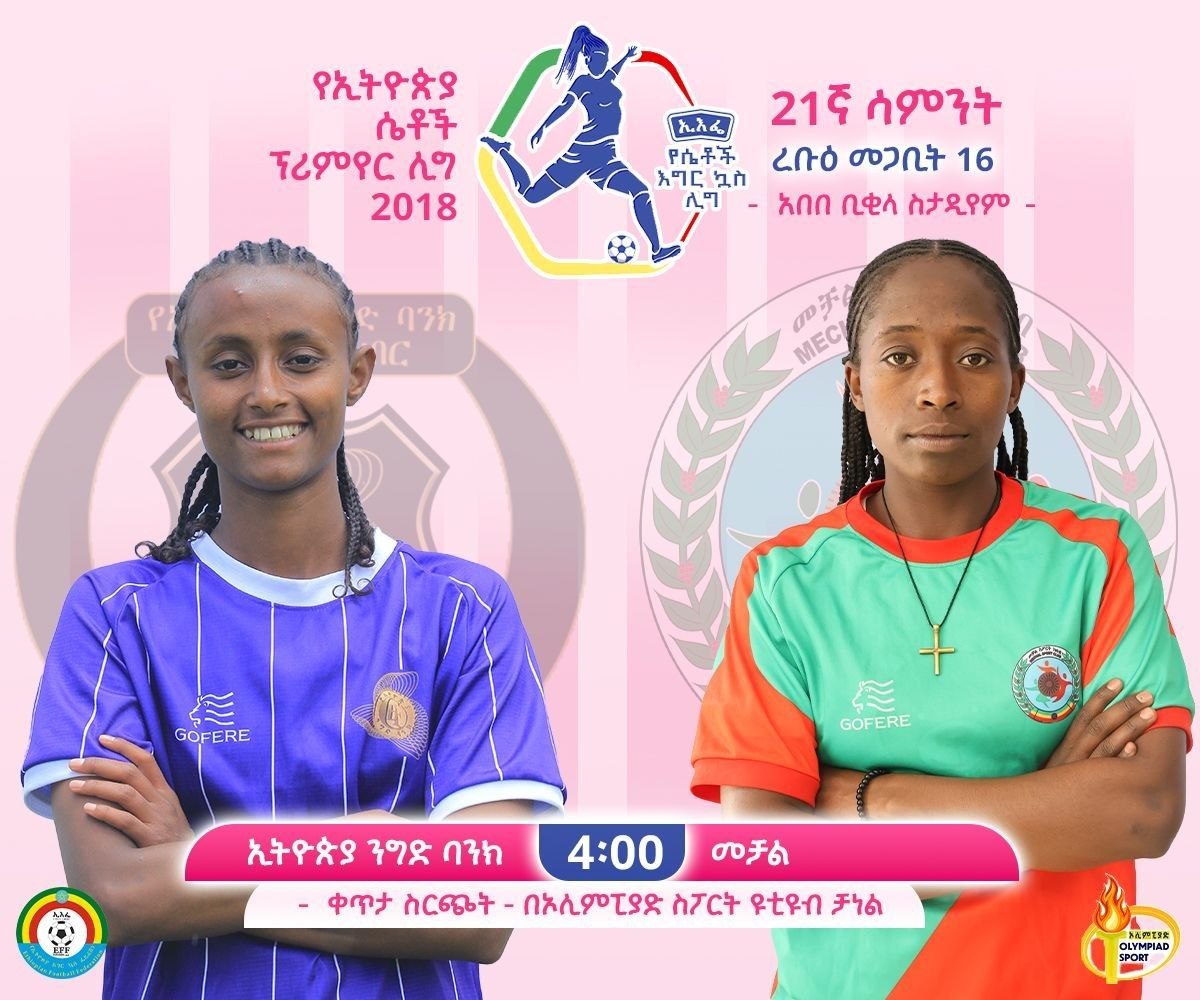 ከረፋዱ አራት ሠዓት ላይ ኢትዮጵያ ንግድ ባንክ ከመቻል በአበበ ቢቂላ ስታዲየም ይጫወታሉ።