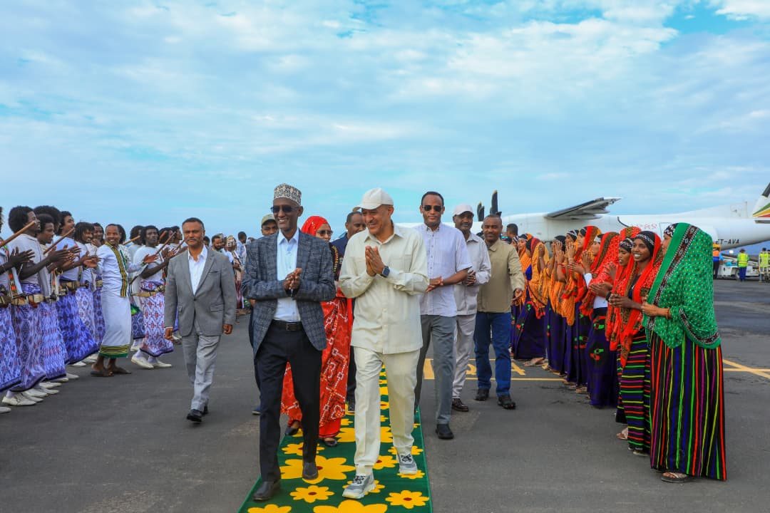 ምክትል ጠቅላይ ሚኒስትሩ እና አመራሮቹ የልማት ስራዎችን ለመጎብኘት ዛሬ ማለዳ ሠመራ ሡልጣን ዓሊሚራህ ሐንፋሬ አውሮፕላን ማረፊያ ሲደርሱ የአፋር ክልል ርዕሰ መስተዳድር አወል አርባን ጨምሮ የክልሉ ከፍተኛ አመራሮች፣ የሃይማኖት አባቶች፣ የሀገር ሽማግሌዎች እና የሠመራ ከተማ ነዋሪዎች ደማቅ አቀባበል አድርገውላቸዋል።
