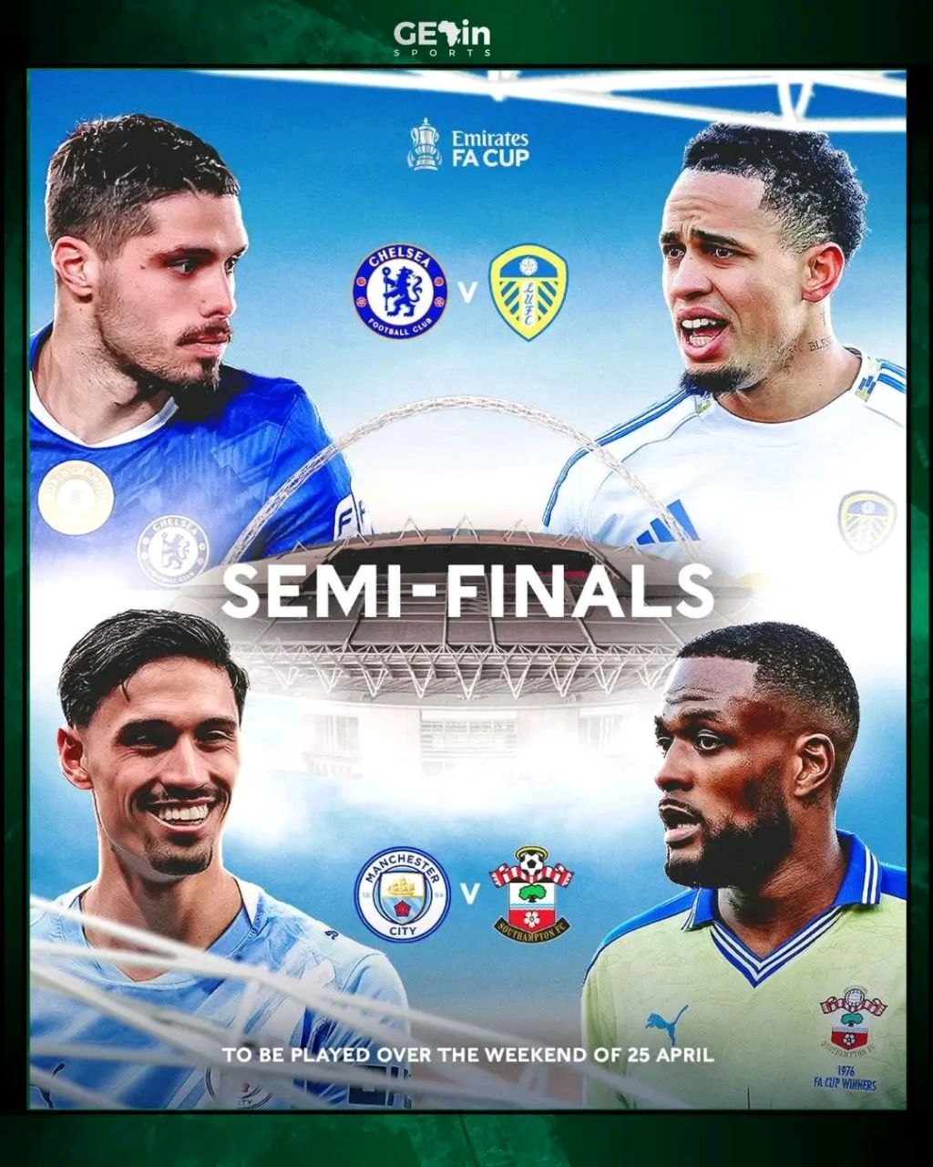 በኤፍኤ ካፕ ግማሽ ፍጻሜ ማንችስተር ሲቲ ከሳውዝሃምፕተን ቼልሲ ከሊድስ ዩናይትድ ይጫወታሉ