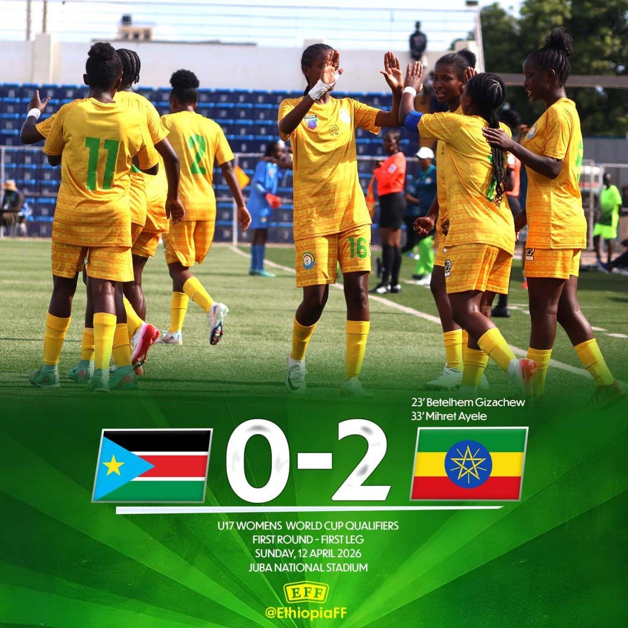 አዲስ አበባ፤ ሚያዚያ 4/2018 (ኢዜአ)፦ በ10ኛው የፊፋ ከ17 ዓመት በታች ሴቶች የዓለም ዋንጫ የአፍሪካ ዞን ቅድመ ማጣሪያ በመጀመሪያ ጨዋታዋ ኢትዮጵያ ደቡብ ሱዳንን 2 ለ 0 አሸንፋለች።