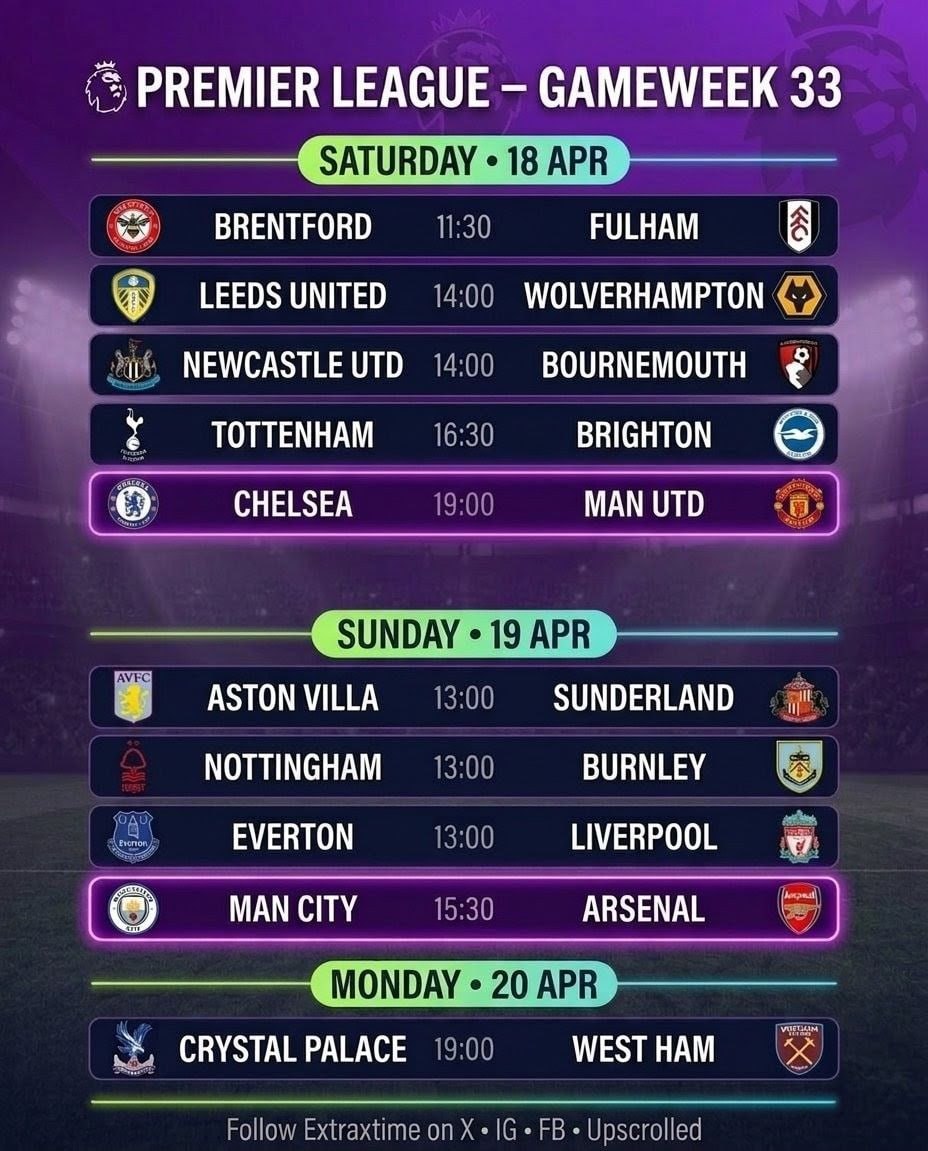 አዲስ አበባ፤ ሚያዝያ 10/2018 (ኢዜአ)፦ የእንግሊዝ ፕሪሚየር ሊግ 33ኛ ሳምንት ዛሬ ይጀመራል።