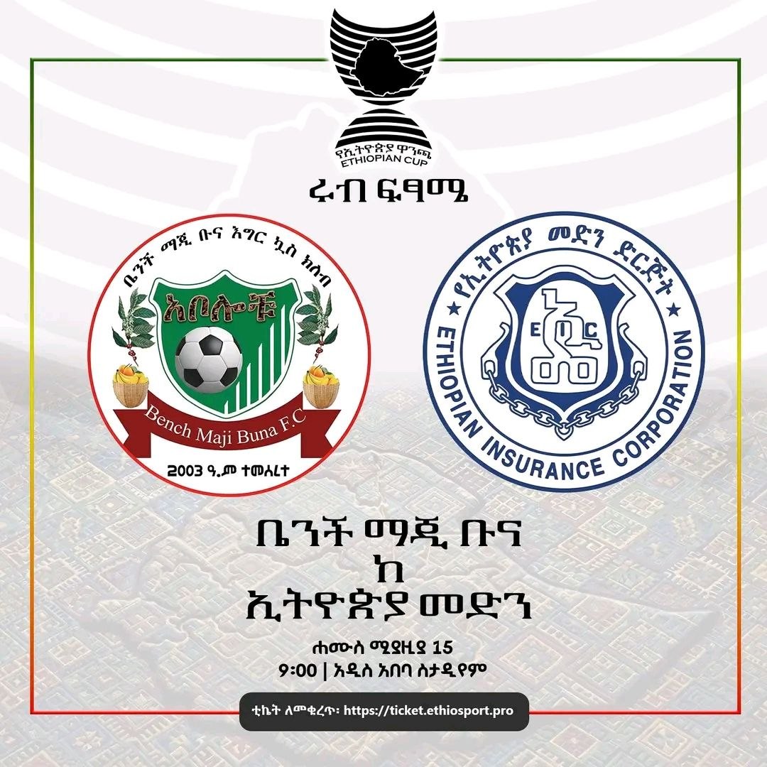 አዲስ አበባ፤ ሚያዝያ 16/2018 (ኢዜአ):- በኢትዮጵያ ዋንጫ ሩብ ፍጻሜ መርሐ ግብር ቤንች ማጂ ቡና እና ኢትዮጵያ መድን ዛሬ ጨዋታቸውን ያደርጋሉ።