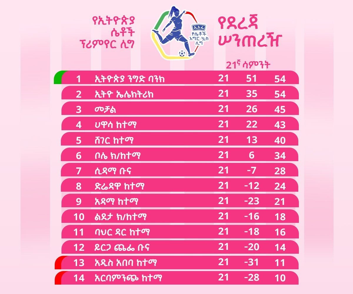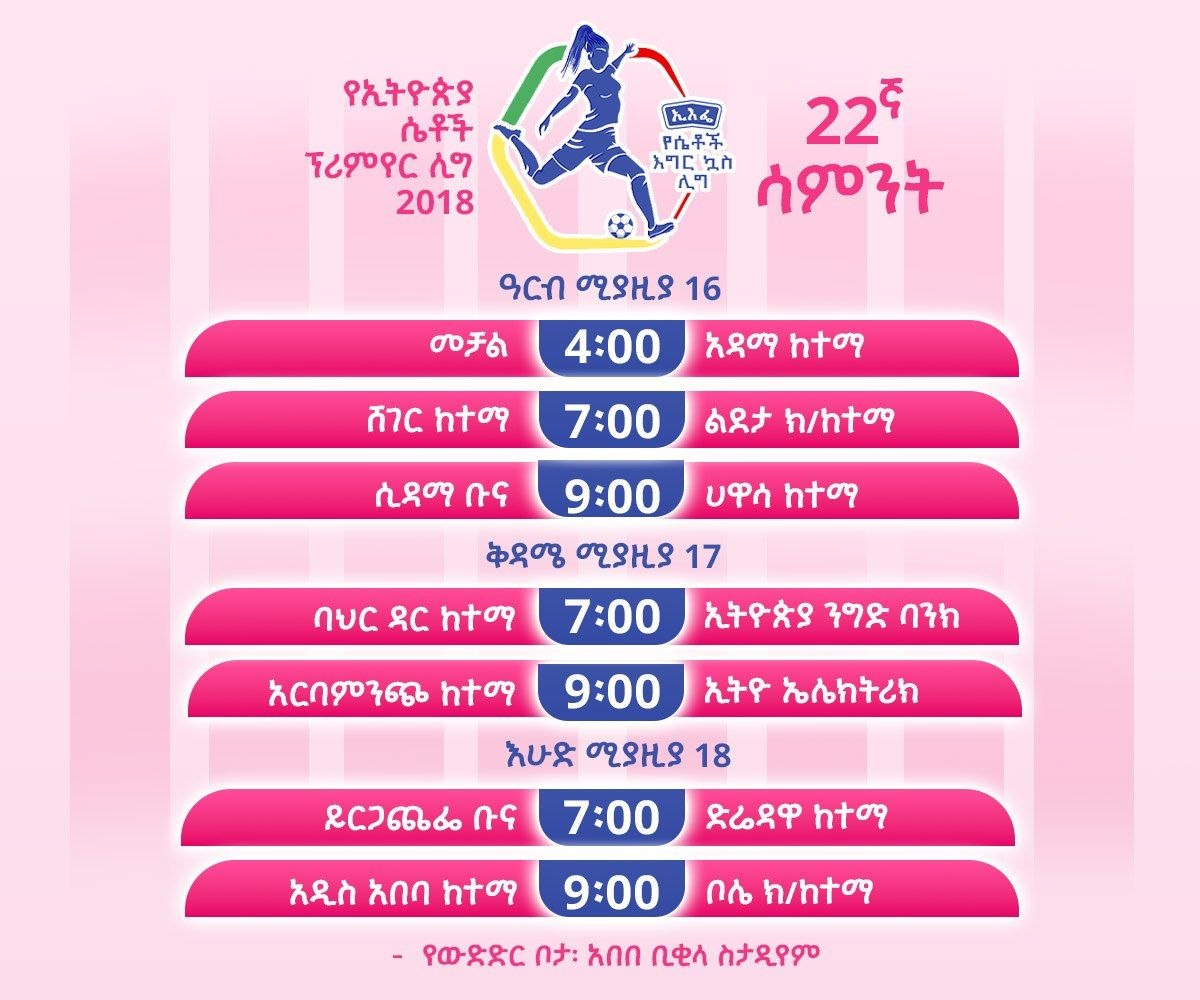 የኢትዮጵያ ሴቶች ፕሪሚየር ሊግ 22ኛ ሳምንት ይጀመራል - ኢዜአ አማርኛ