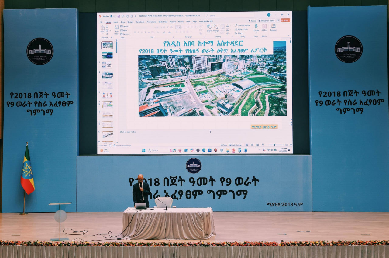 የአዲስ አበባ ከተማ አሥተዳደር የ2018 በጀት ዓመት የዘጠኝ ወራት ሥራ አፈፃፀም ግምገማ እየተካሄደ ነው።