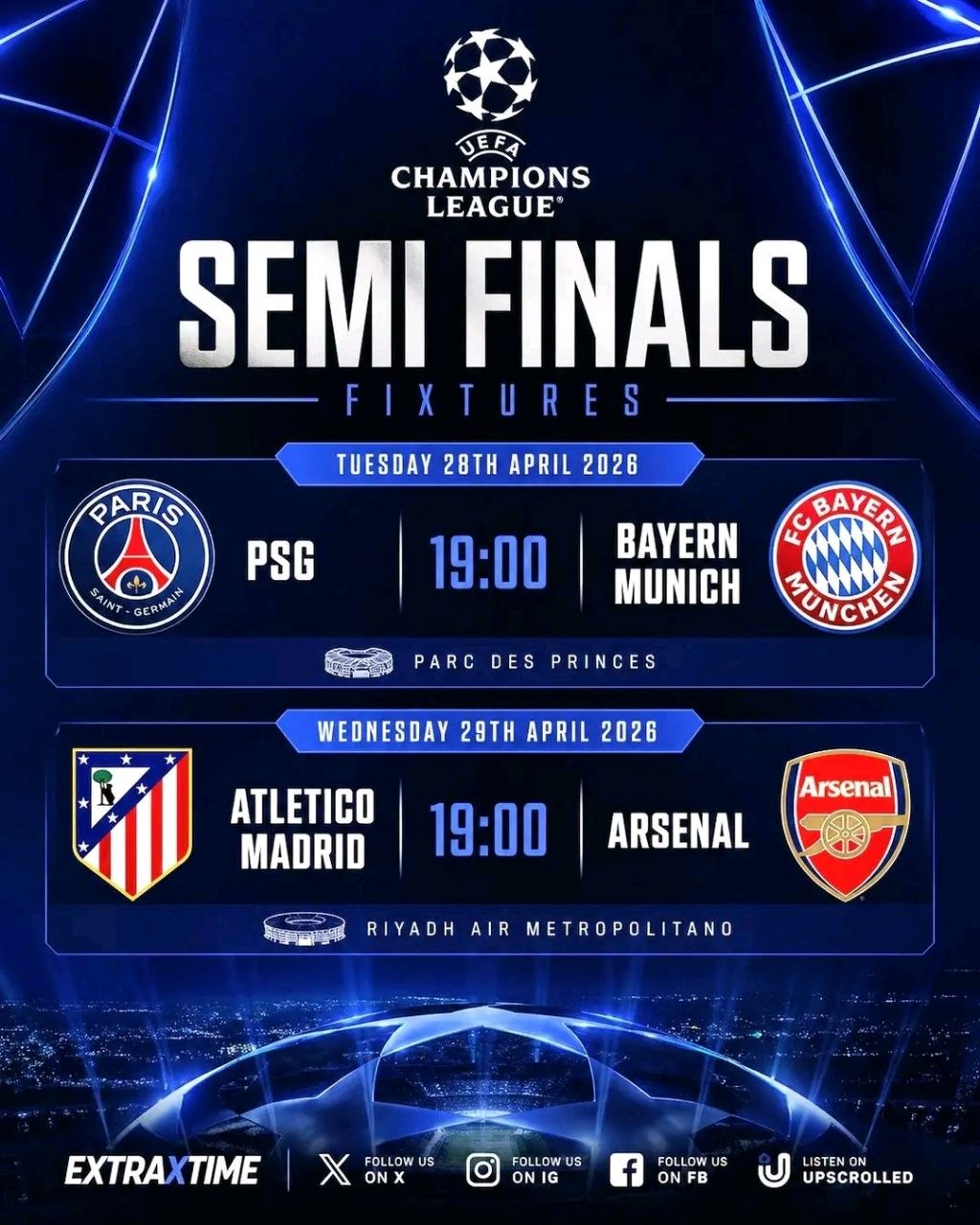 በሩብ ፍጻሜው ፒኤስጂ ሊቨርፑልን፣ ባየር ሙኒክ ሪያል ማድሪድን አሸንፈዋል።