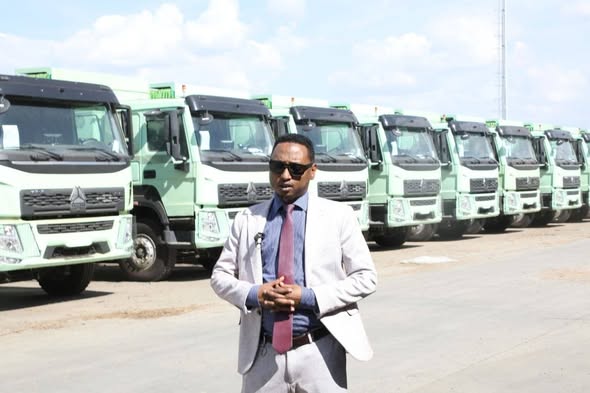 የትራንስፖርትና ሎጂስቲክስ ሚኒስትር ዴኤታ አቶ በረኦ ሀሰን፤ የቻይና ኮሙኒኬሽንስ ኮንስትራክሽን ኩባንያ (CCCC) የገዛቸውን 92 ዘመናዊ የኤሌክትሪክ የጭነት ተሽከርካሪዎች በእንዶዴ ባቡር ጣቢያ በመገኘት ሥራ አስጀምረዋል፡፡