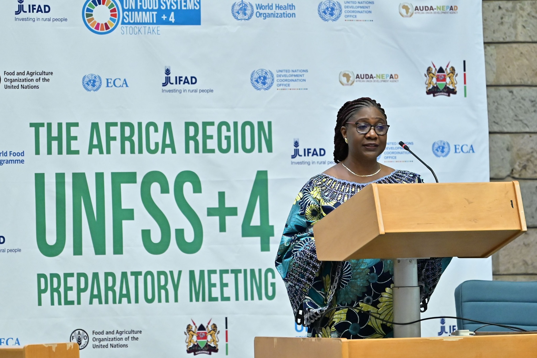 خلال الاجتماع التحضيري لقمة الأمم المتحدة لنظم الأغذية +4 في نيروبي، وجهت مديرة الزراعة ونظم الأغذية والاستدامة البيئية في وكالة التنمية الزراعية الأفريقية ، إسترين ليزينج-فوتابونج، رسالةً بالغة الأهمية.