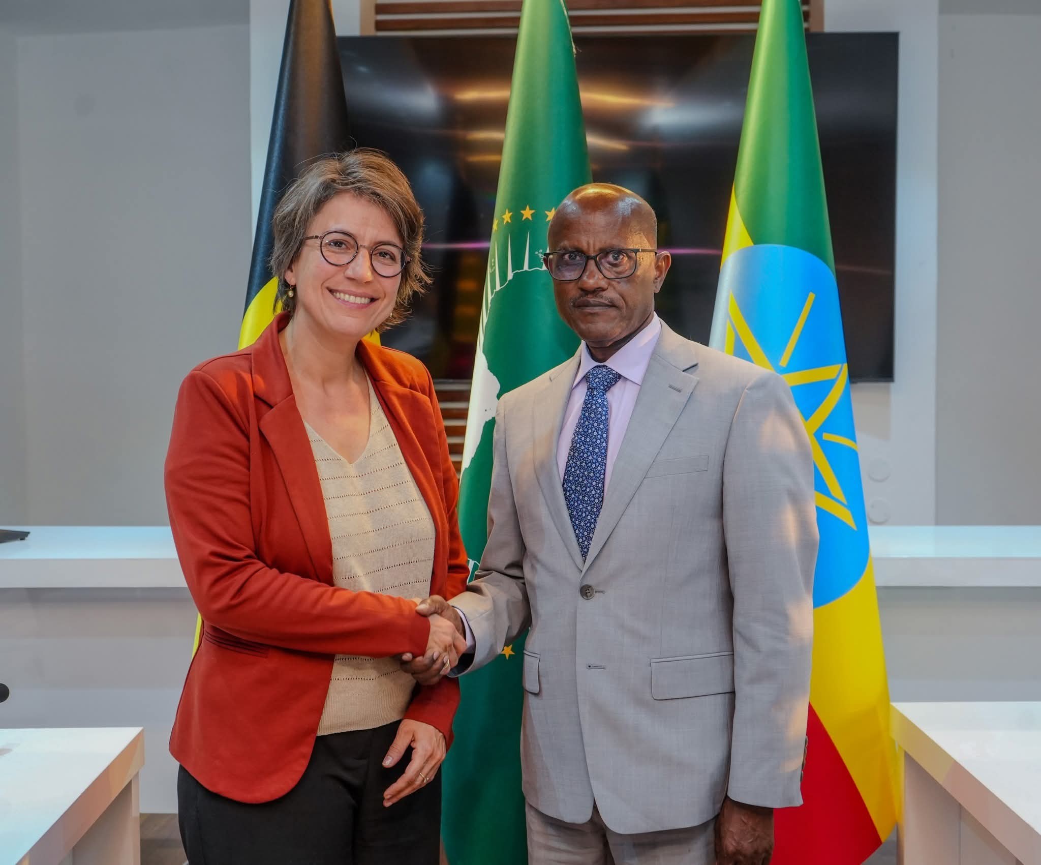 عقد اليوم وفد بلجيكي برئاسة ، الأمينة العامة ورئيسة مجلس إدارة وزارة الخارجية والتجارة الخارجية والتعاون الإنمائي البلجيكية ثيودورا جينتزيس، ووزيرة الدولة للشؤون الخارجية الإثيوبية، حدرا ابرا.