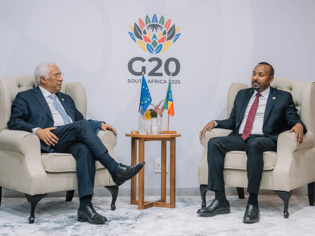 أديس أبابا، 22 نوفمبر 2025 (إينا) - عقد رئيس الوزراء آبي أحمد اجتماعًا ثنائيًا مع رئيس المجلس الأوروبي أنطونيو كوستا على هامش قمة العشرين في جنوب أفريقيا، ركز على تعزيز العلاقات بين إثيوبيا والاتحاد الأوروبي.