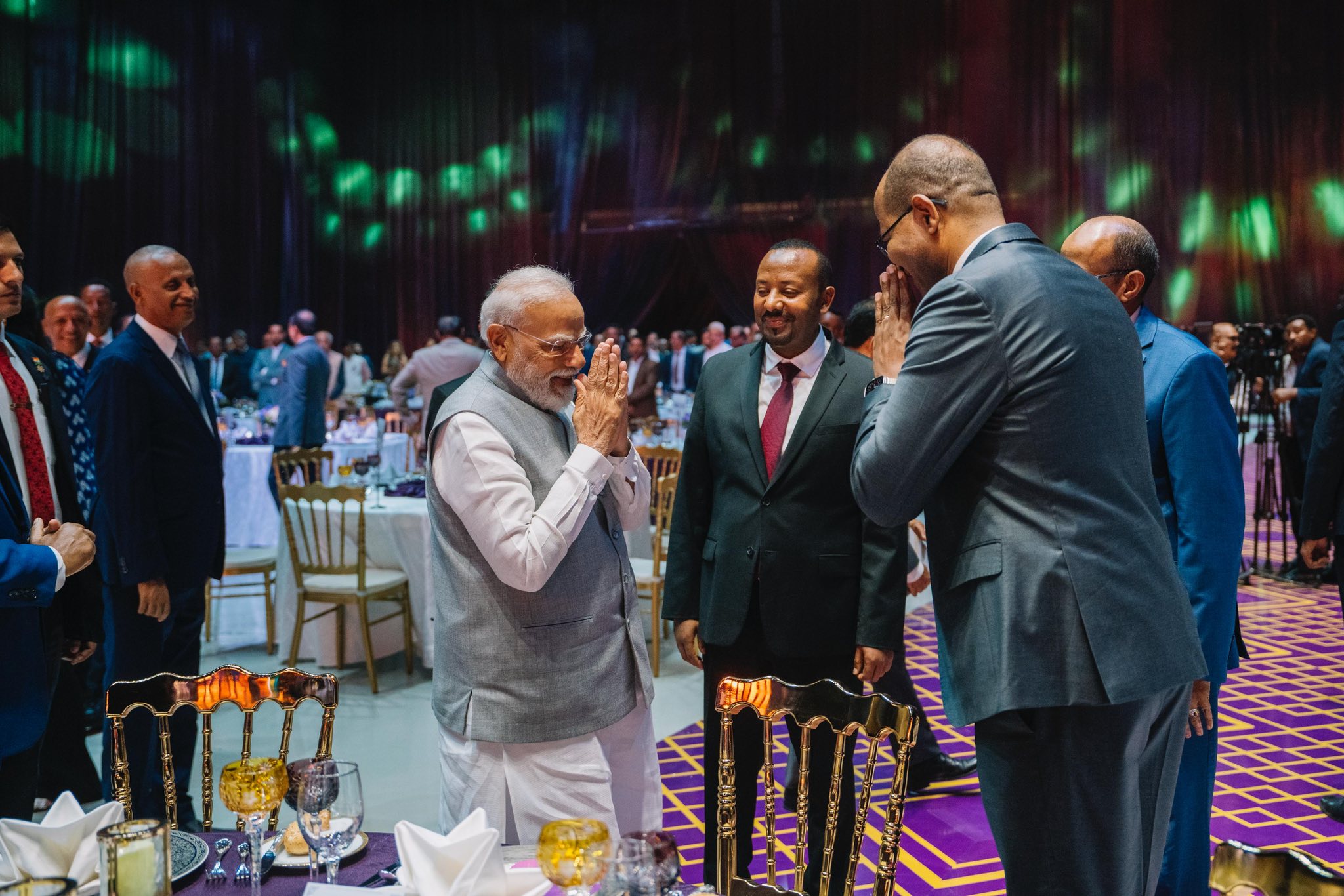 وأُقيمت مأدبة رسمية على شرف رئيس الوزراء ناريندرا مودي في مركز أديس أبابا الدولي للمؤتمرات مساء الثلاثاء.