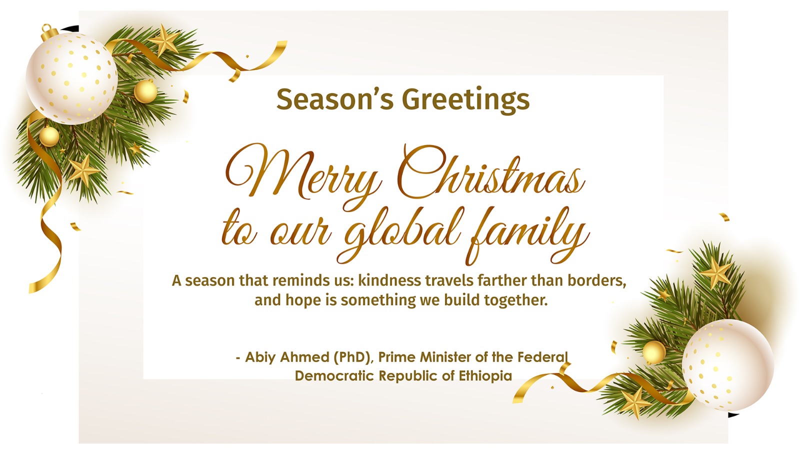 رئيس الوزراء آبي أحمد يوجّه تهنئة عيد الميلاد إلى شعوب العالم