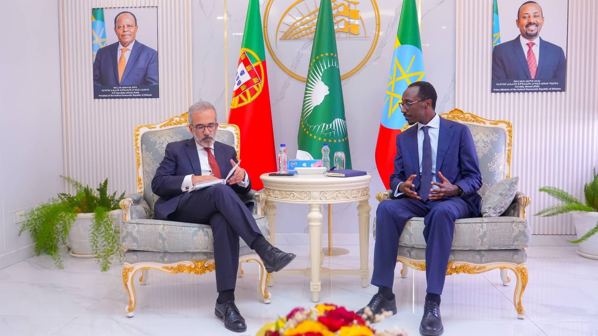 عقد وزير الخارجية الإثيوبي، جيديون تيموثيوس، مباحثات في مكتبه مع وزير الخارجية البرتغالي، باولو رانجيل.