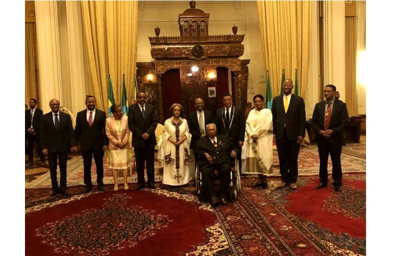 Addis Ababa November 04/2018 Ethiopia has awarded the highest national Medal of Honor to the former President Mulatu Teshome at national palace yesterday. During the farewell ceremony attended by senior government officials, contending political parties and diplomats, Prime Minister Abiy Ahmed said the event is organized to bestow recognition for the remarkable achievements of leaders. Saying that being former leader is inevitable, he noted the program is an exemplary for the current leaders to serve their country benevolently. Mulatu deserves the award for his outstanding achievement, the Premier said adding that the rational to leave his tenure is to “Unveil that the ongoing reform is on the right track.” He prioritized the interest of the public over his concern, the Prime Minister added. Speaking on the occasion, former president Mulatu Teshome said the farewell ceremony is what the country has been yearning for. “This revealed that we are on the right track of democratization,” he said adding that it liquidated the concern of the leader’s safety after leaving office. Promising to serve his country by prioritizing the nation’s interest, he called upon the people to stand together to ensure the continuity of the reform and tackle poverty. Ethiopia also bestowed the highest national honor of medal for the former president of Federal Supreme court, Dagne Melaku. Mentioning that his health problem is the rational for his resignation, Dagne promised to share his wealthy of experience to ensure justice in the country. The new elected female president Sahlework Zewde said on her part that former president Mulatu has served his country compassionately. She hoped that she will have similar farewell ceremony. It is to be recalled that the joint session of Houses of Peoples’ Representative and Federation accepted the resignations of Mulatu Teshome and elected a new female president. Mulatu has served his country for the last five years as a president.