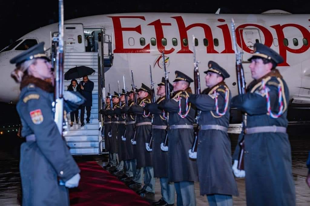 Addis Ababa, November 28/2023 (ENA) Prime Minister Abiy Ahmed and First Lady Zinash Tayachew arrived in Prague, Czech Republic for official state visit.