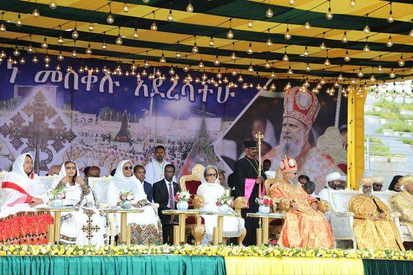 The feast of Demera is taking place colorfully at Meskel Square in Addis Ababa in the presence of President Sahle-Work Zewde, arch bishops, senior government officials, religious fathers, and diplomatic corps.