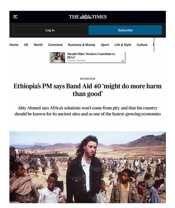 While acknowledging the well-meaning intentions behind the original Band Aid initiative, Abiy pointed out that Ethiopia has undergone substantial transformation since the 1980s.