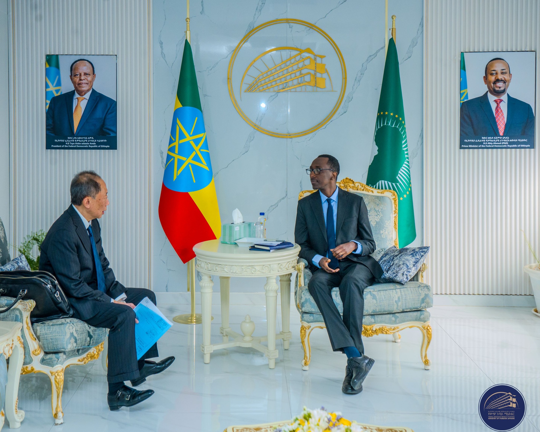 The Foreign Minister received and held discussions with the Japanese Ambassador to Ethiopia, Shibata Hironori at his office today.