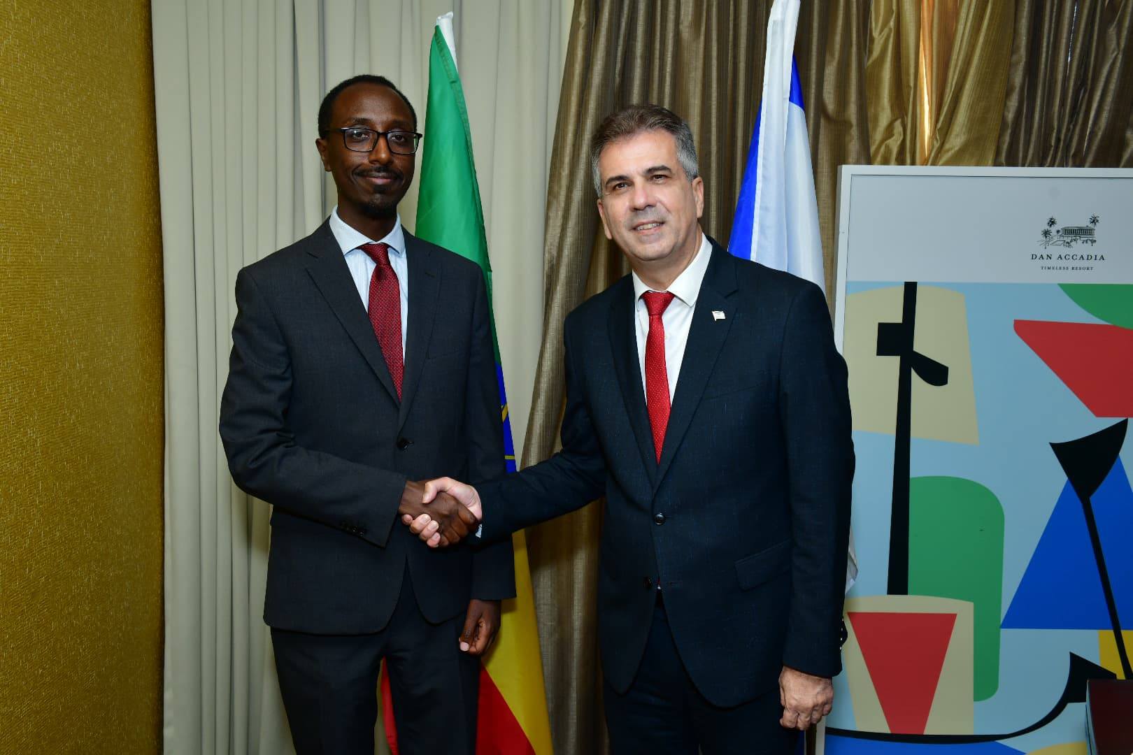 Minister of Foreign Affairs, Gedion Timothewos met with Eli Cohen, Minister of Energy and Infrastructure of the State of Israel, to discuss enhancing bilateral cooperation in energy, infrastructure, mining, and investment.