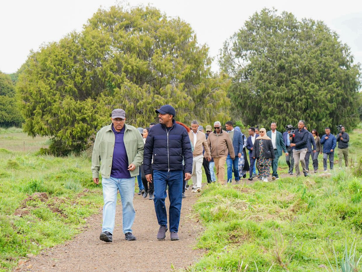 Addis Ababa, October 17, 2025 (ENA) -- Accompanied by a high-level delegation of current and former leadership, Prime Minister Abiy Ahmed and First Lady Zinash Tayachew arrived in the Bale Zone to review the Dinsho Lodge, which is currently under construction, and its surrounding environment as well as the Gese Grasslands.