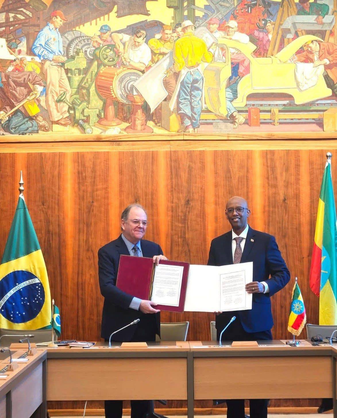 Speaking at the ceremony, Ambassador Tsegab described the signing as both a significant technical achievement and a political affirmation of the strong and growing partnership between Ethiopia and Brazil, rooted in South–South cooperation, multilateralism, and development-oriented engagement.