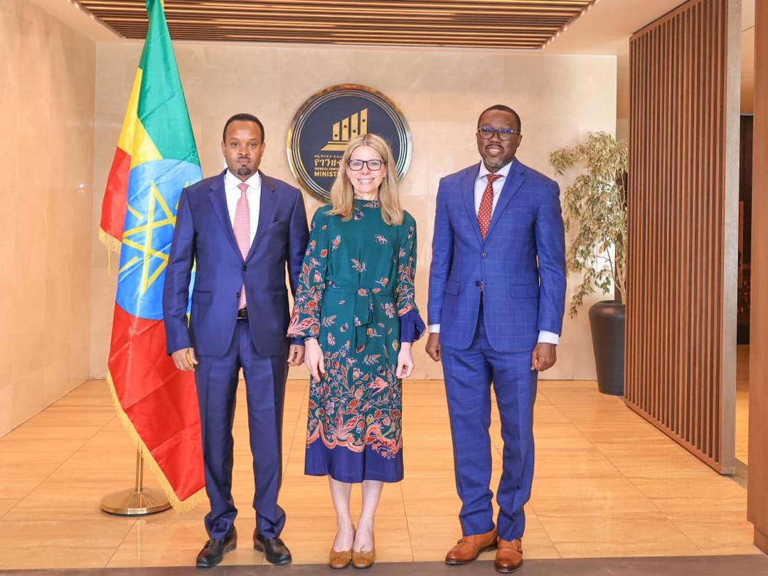 Ethiopia’s Minister of Finance, Ahmed Shide, met with Anna Bjerde, World Bank Managing Director of Operations, and Ndiame Diop, World Bank Vice President for the East and Southern Africa Region, to review progress under Ethiopia’s ongoing macroeconomic reform program and discuss priorities for sustaining growth and stability.