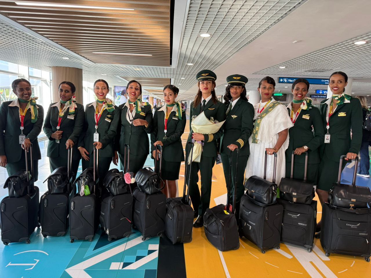 Aircraft operated by the all-female teams are flying to Cairo, Djibouti, Nairobi, Frankfurt, Accra, Mumbai, Windhoek, and Dire Dawa, a network of routes symbolizing the strength, professionalism, and progress of Ethiopian women in aviation.
