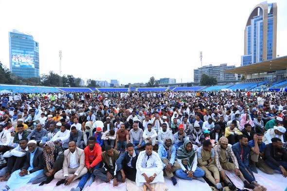 The President of the Ethiopian Islamic Affairs Supreme Council, Sheikh Haji Ibrahim Tufa, joined thousands of worshippers at the central prayer in Addis Ababa, alongside religious leaders and invited guests.