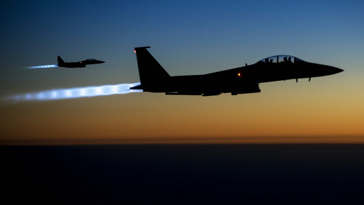 William Goodhind, a forensic imagery analyst with Contested Ground, said images of a tail fin posted online are consistent with that of an F-15E Strike Eagle.