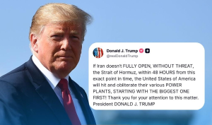 Trump brandit la menace de frappes contre les infrastructures énergétiques iraniennes sur fond de tensions croissantes autour du détroit d’Ormuz.