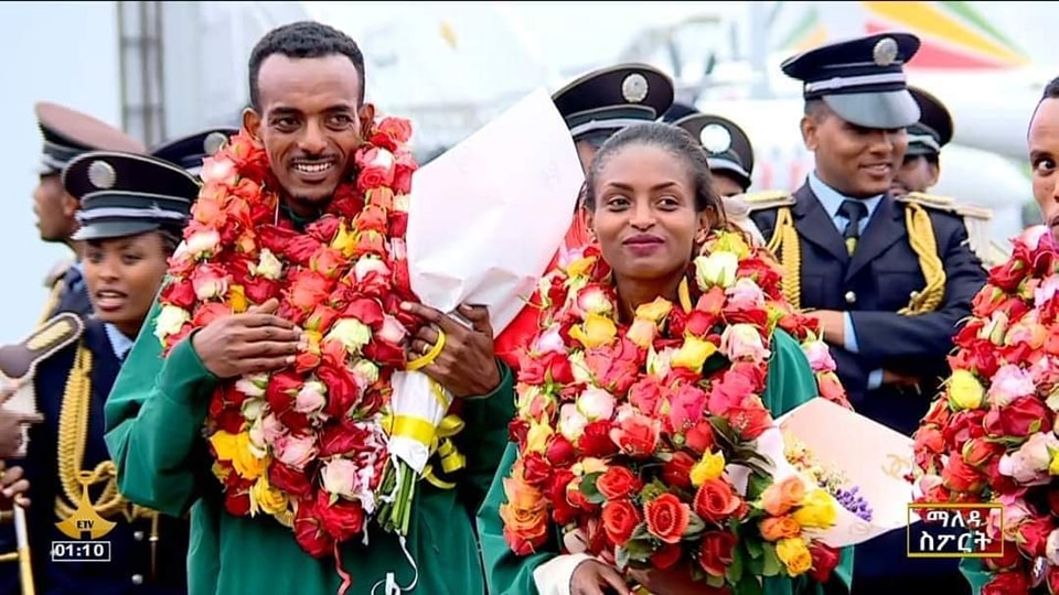 L'équipe a été chaleureusement accueillie à son arrivée à l'aéroport international de Bole par la ministre de la Culture et des Sports, Shewit Shanka, le ministre d'État, l'ambassadeur Mesfin Cherinet, les dirigeants du Comité olympique éthiopien, la fédération éthiopienne d'athlétisme et d'autres invités de marque.