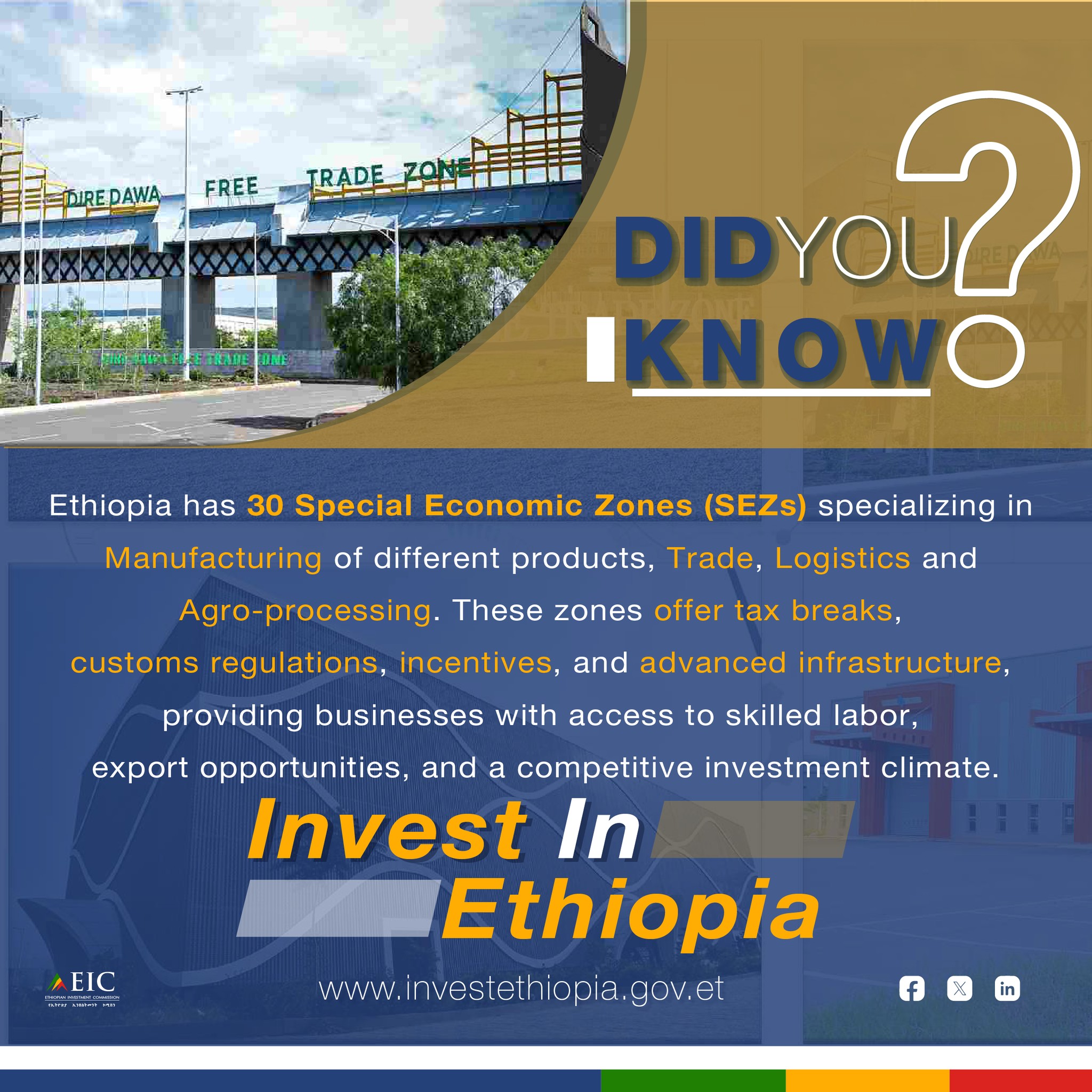 Pour la Commission, en investissant dans ces zones, les IDE peuvent tirer parti de la situation stratégique de l'Éthiopie, de son marché en pleine croissance et de son climat des affaires favorable.