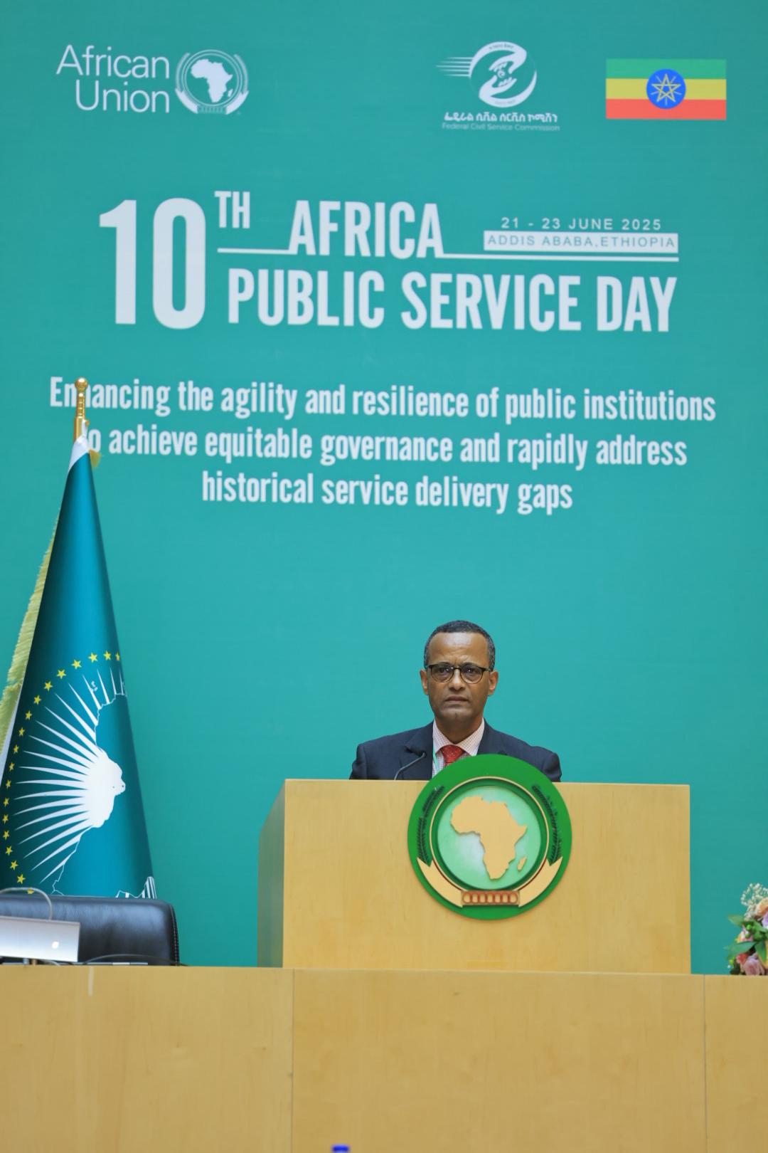 La 10e Journée continentale africaine de la fonction publique (APSD), organisée par l'Union africaine et la Commission fédérale de la fonction publique éthiopienne, se tient aujourd'hui à Addis-Abeba sous le thème : « Renforcer l'agilité et la résilience des institutions publiques pour parvenir à une gouvernance équitable et combler rapidement les lacunes historiques en matière de prestation de services ».
