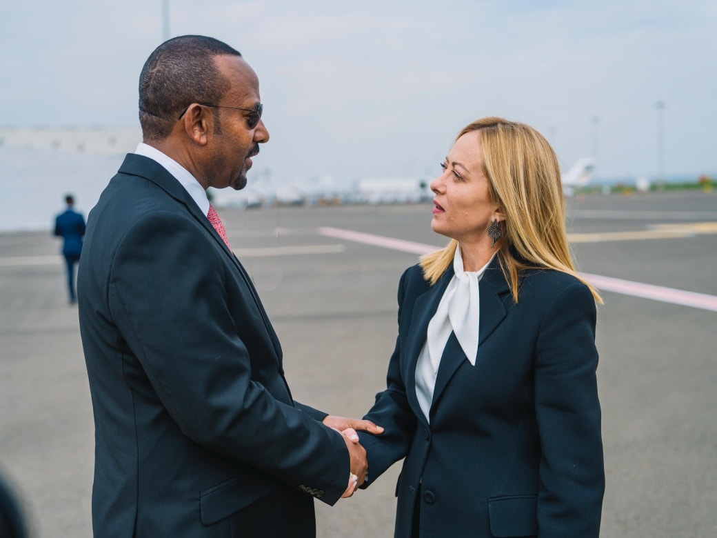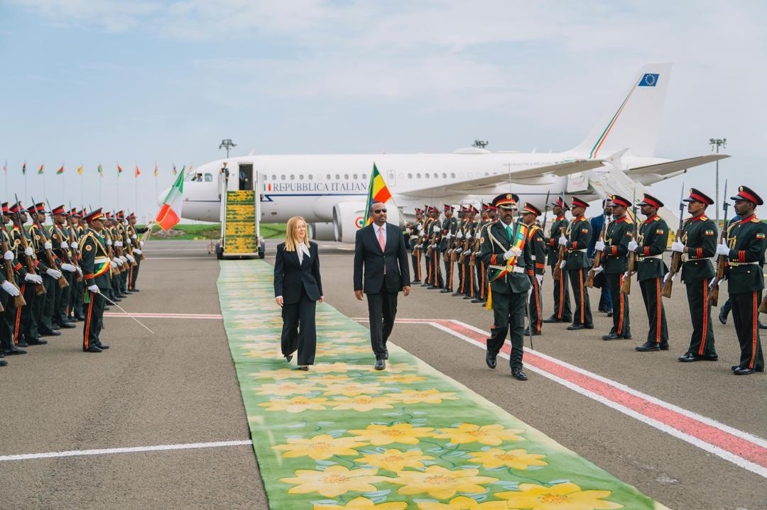 « J'ai le plaisir d'accueillir en Éthiopie Giorgia Meloni, Première ministre et présidente du Conseil des ministres de l'Italie », a indiqué le Premier ministre Abiy Ahmed sur X.