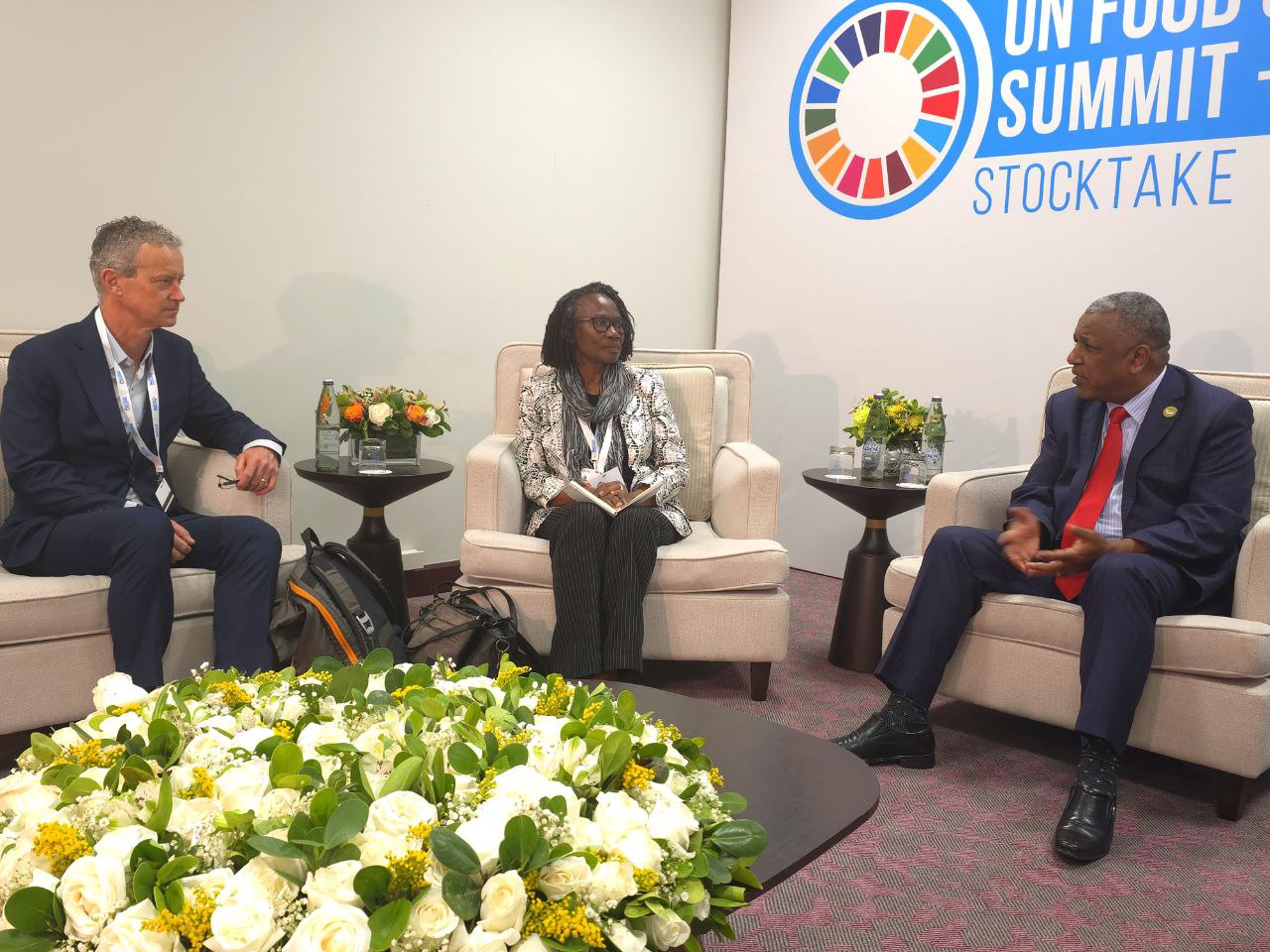 En marge du bilan du Sommet des Nations Unies sur les systèmes alimentaires +4 à Addis-Abeba, le ministre de l'Agriculture, Girma Amante, a eu des discussions bilatérales avec le ministre zambien de l'Agriculture, Mtolo Phiri, et Greg Hallen, chef d'équipe pour les systèmes alimentaires résilients au climat au Centre de recherches pour le développement international (CRDI) du Canada, afin de renforcer la collaboration en matière d'agriculture durable.