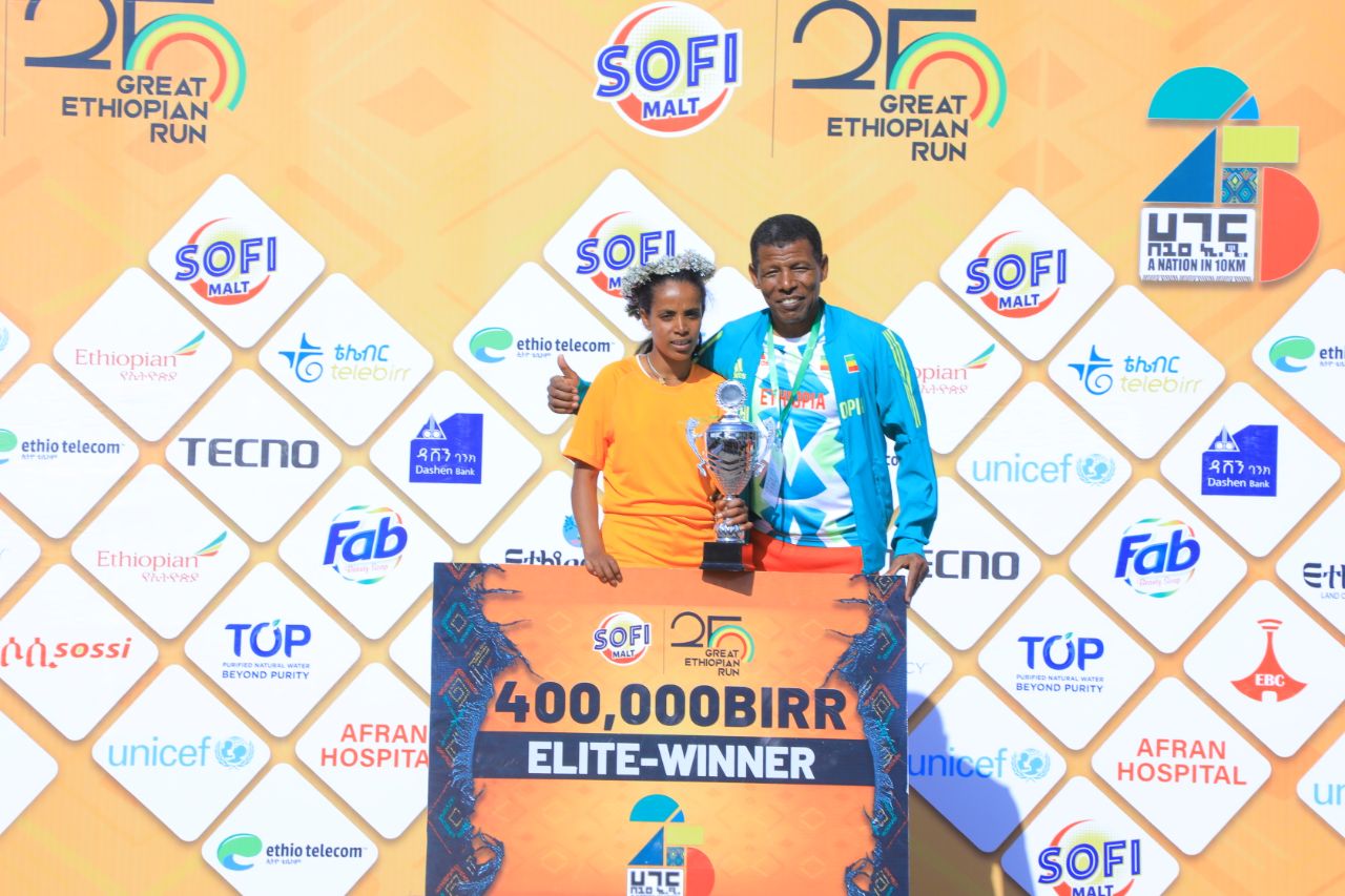 Elle a également rendu hommage au fondateur de la course, la légende olympique Haile Gebrselassie.
