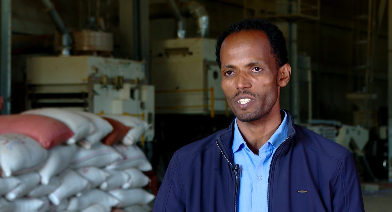 Abdela Feyso, membre d'une coopérative agricole qui produit des semences grâce à l'agriculture en grappes autour de la ville de Bekoji, a déclaré que la formation ainsi que la fourniture d'intrants agricoles tels que des semences certifiées et des machines agricoles ont complètement changé leur approche de l'agriculture.