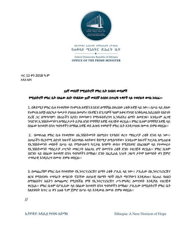 Le Conseil des ministres éthiopien approuve des décisions économiques et politiques radicales
