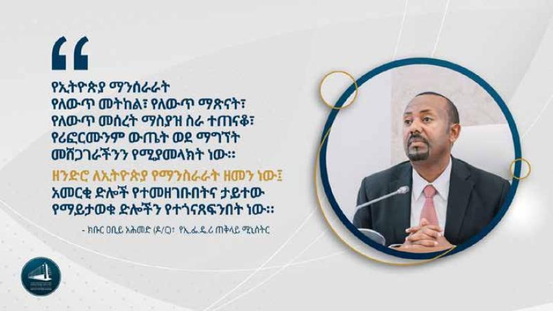 “ሃምሳ ሎሚ ለአንድ ሰው ሸክሙ፤ ለሃምሳ ሰው ጌጡ” እንዲሉ፤ መላው አገር ወዳድ ዜጋ የፓለቲካ አመለካከት፣ የሃይማኖት ልዩነት፣ የመኖሪያ ቦታ ርቀት ሳይገድበው በአንድ ዓላማ የተሰለፈበት፤ ከዕለት ጉርሱና ከዓመት ልብሱ እየቀነሰ ገንዘቡን የለገሰበትና ቦንድ የገዛበት፤ አርሶ እና አርብቶ አደሩ በጉልበቱ ላቡን አፍስሶ በአካባቢ ጥበቃ ሥራ ላይ በመሰማራት ታላላቅ አገራዊ ስኬቶች ያስመዘገበበት ነው።
