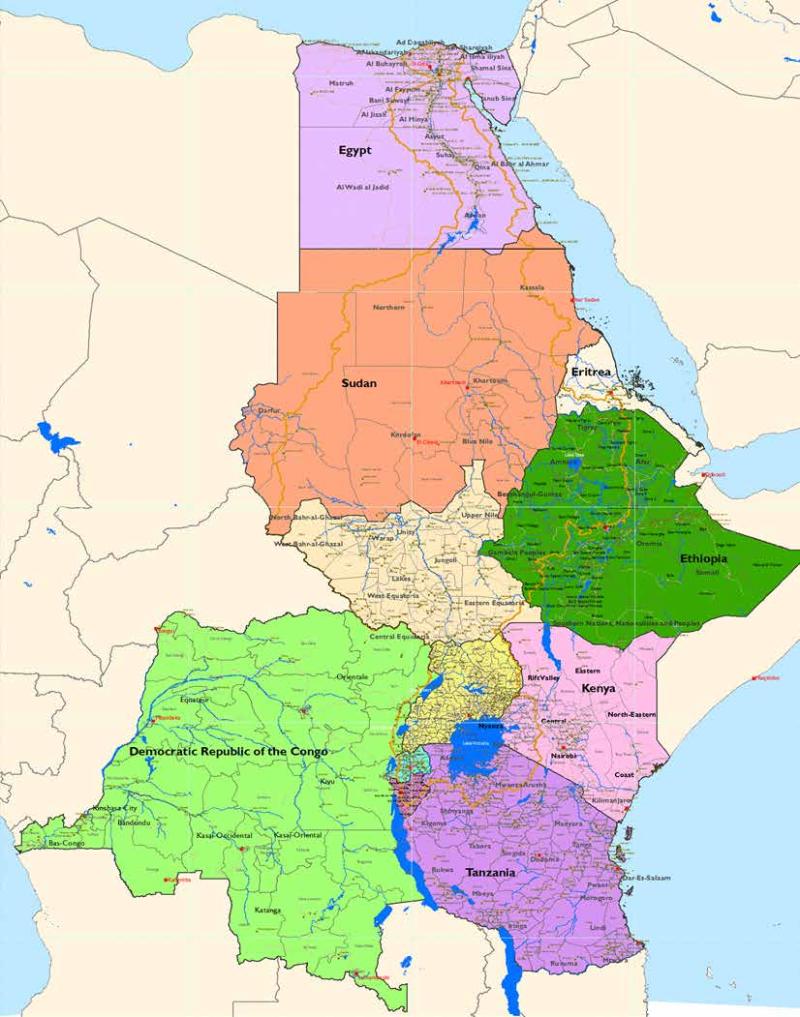 አሥሩ የናይል ተፋሰስ አገራት፡- ኢትዮጵያ፣ ቡሩንዲ፣ ኮንጎ ዴሞክራቲክ ሪፐብሊክ፣ ግብጽ፣ ኤርትራ፣ ኬንያ፣ ሩዋንዳ፣ ደቡብ ሱዳን፣ ሱዳን፣ ታንዛኒያ እና ኡጋንዳ