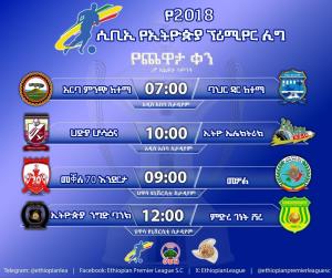 Onkoloolessa 14/2018 (TOI)- Piriimar Liigii Itiyoophiyaa torbee lammaffaa olmaa guyyaa lammaffaatiin har’a taphoonni afur ni gaggeeffamu Magaalaan Arbaa Minci magaalaa Bahaar Daar waliin guyyaa sa’aatii 7tti, Hadiyyaa Hoosaa’inaan Itiyoo Elektiriik waliin guyyaa sa’aatii 10tti Istaadiyeemii Finfinneetti nitaphatu. Maqalee 70 Indartaan Machaal waliin guyyaa sa’aatii 9tti, Baankiin daldalaa Itiyoophiyaa Midiragannat Shiree waliin galgala sa’aatii 12tti Istaadiyeemii Yuunivarsiitii awaasaatti ni taphatu. Piriimer Liigii Itiyoophiyaatiin kilaboonni 20 ramaddii lamatti qoodamanii taphachaa jiru. Kilaboonni 10 tokkoo tokkoo ramaddii keessatti ni argamu. Gareewwan ramadii tokkoffaa Istaadiyeemii Yuunivarsiitii Hawaasaatti, gareewwan ramaddii lammaffaa Istaadiyeemii Finfinneetti taphachaa akka jiran odeeffannoon waldaa aksiyoonaa nimul’isa.