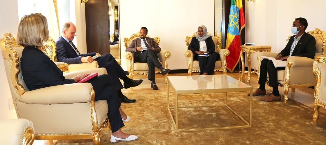 Ministirri Ministeera Maallaqaa obbo Ahimad Shidee Magaalaa Finfinneetti kan argaman hoogganaa damee deeggarsaa Gamtaa Awurooppaa obbo Erikaaber waliin dhimmoota deeggarsa namoomaa naannoo Tigiraayitti gtaasifamaa jiruufi akkaataa lammiilee deebisanii qubsiisuun danda’amurratti mari’ataniiru.