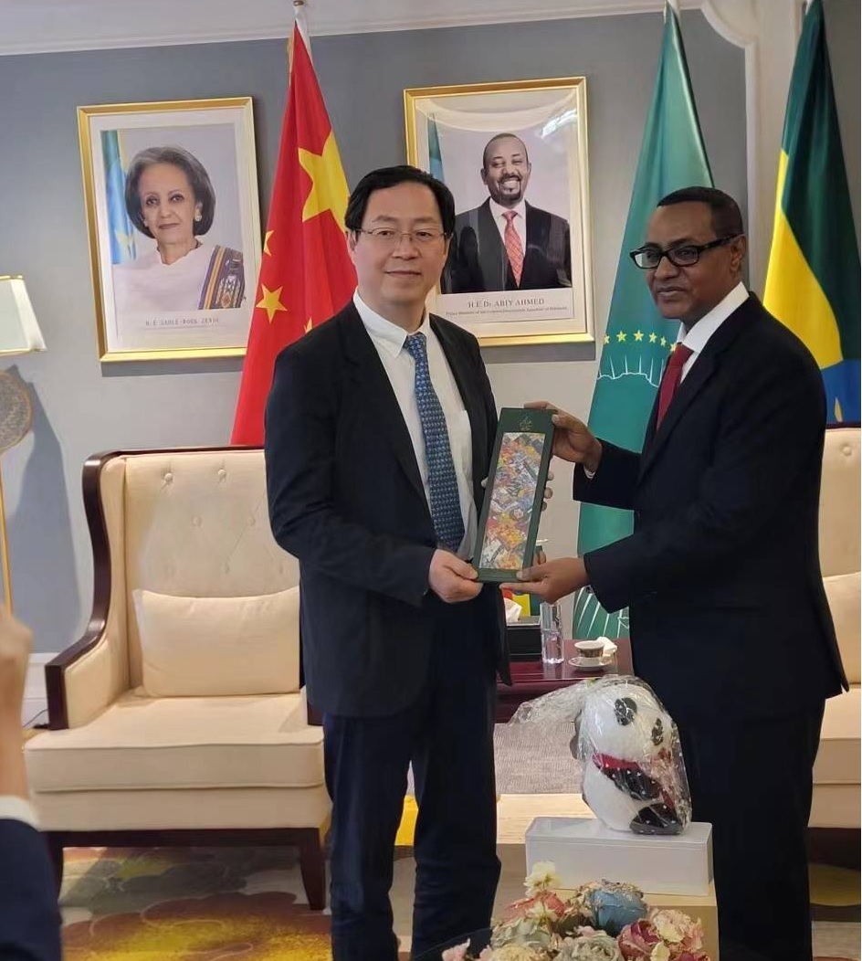 Ambaasaaddar Tafarraa Darribew hoogganaa hariiroo alaa magaalaa Shaangiduu waliin dhimmoota biyyoota lamaaniirratti mari’atan - ENA Afaan Oromoo