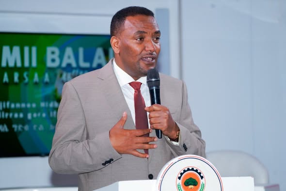 Onkoloolessa 13/2018(TOI)-Hidhi Haaromsaa Guddichi Itiyoophiyaa humna ibsaa qofa osoo hin ta’iin Haroo Nigaatirratti madda Dinagdee guddaa ta’aa dhufuu itti Aanaan Pirezidaantii Mootummaa Naanno Oromiyaa Awwaluu Abdii ibsan.
