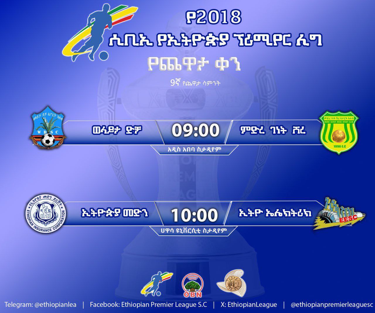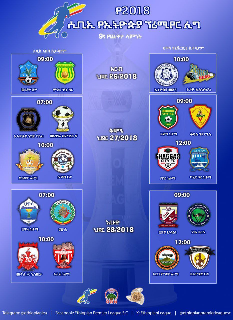 Piriimiyer liigii Itiyoophiyaa Torban 9ffaan hanga sadaasa 28 bara 2018 ni tura.