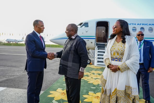 Guraandhala 7/2018 (ENA)- Pireezidaantiin Afrikaa Kibbaa Siiriil Raamaafoozaan yaa’ii hoggantootaa Gamtaa Afrikaa 39ffaa irratti hirmaachuuf Finfinnee gahaniiru.