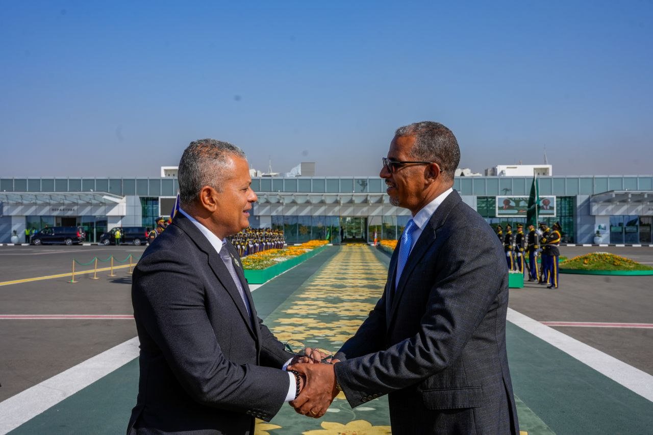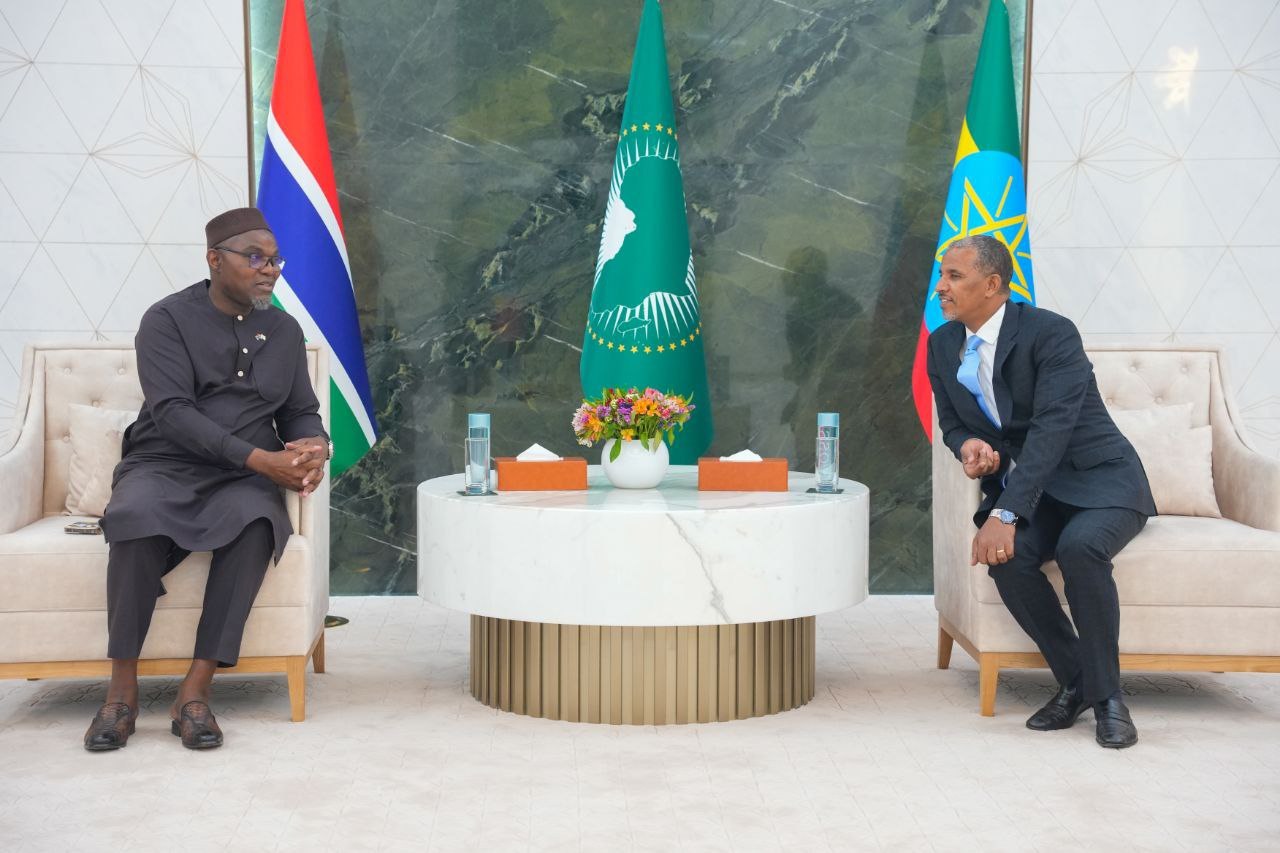 Akkasumas Itti Aanaan Pirezidaantii Gaambiyaa Mahaammad Jaalowu fi itti Aanaan Pirezidaantii Siisheelsi Sebasitiin Piiley buufata Xiyyaaraa Idil- Addunyaa booleetti gaggeessan kabajaa taasifameeraaf.