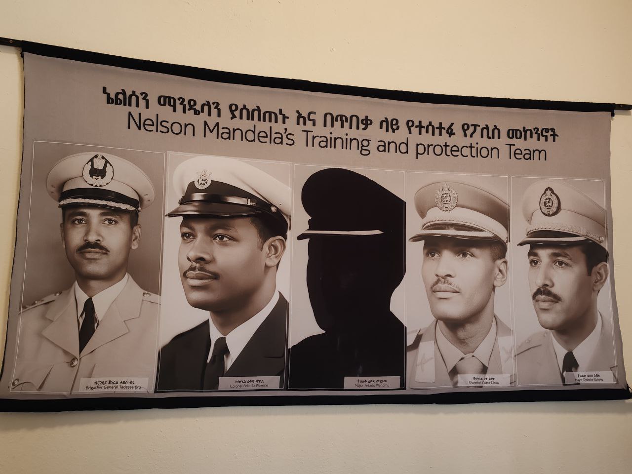 Nelsan Mandellaan miseensotaa fi qondaaltota poolisii Itiyoophiyaanotaan leenji’uusaanii eeranii, Birgaadar Jeneraal Taaddasaa Birruu, Koloneel Fiqaaduu Waakkennee, ajajaan kudhanii Faqaaduu Wandimmuun kanneen Nelsan Mandellaa leenjisan keessaa ta’uu ibsaniiru.