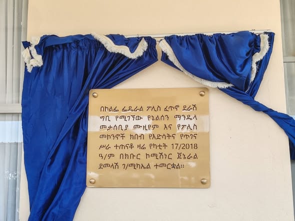 Guraandhala 17/2018(ENA)- Golambaan yaadannoo pirezidaantii Afriikaa Kibbaa duraanii fi qabsaa’aa farra Appaartaayid Nelsan Mandellaa bakka itti leenji’an Kolfee mooraa poolisii dafee qaqqabaa federaalaatti moggaafame eebbifame.