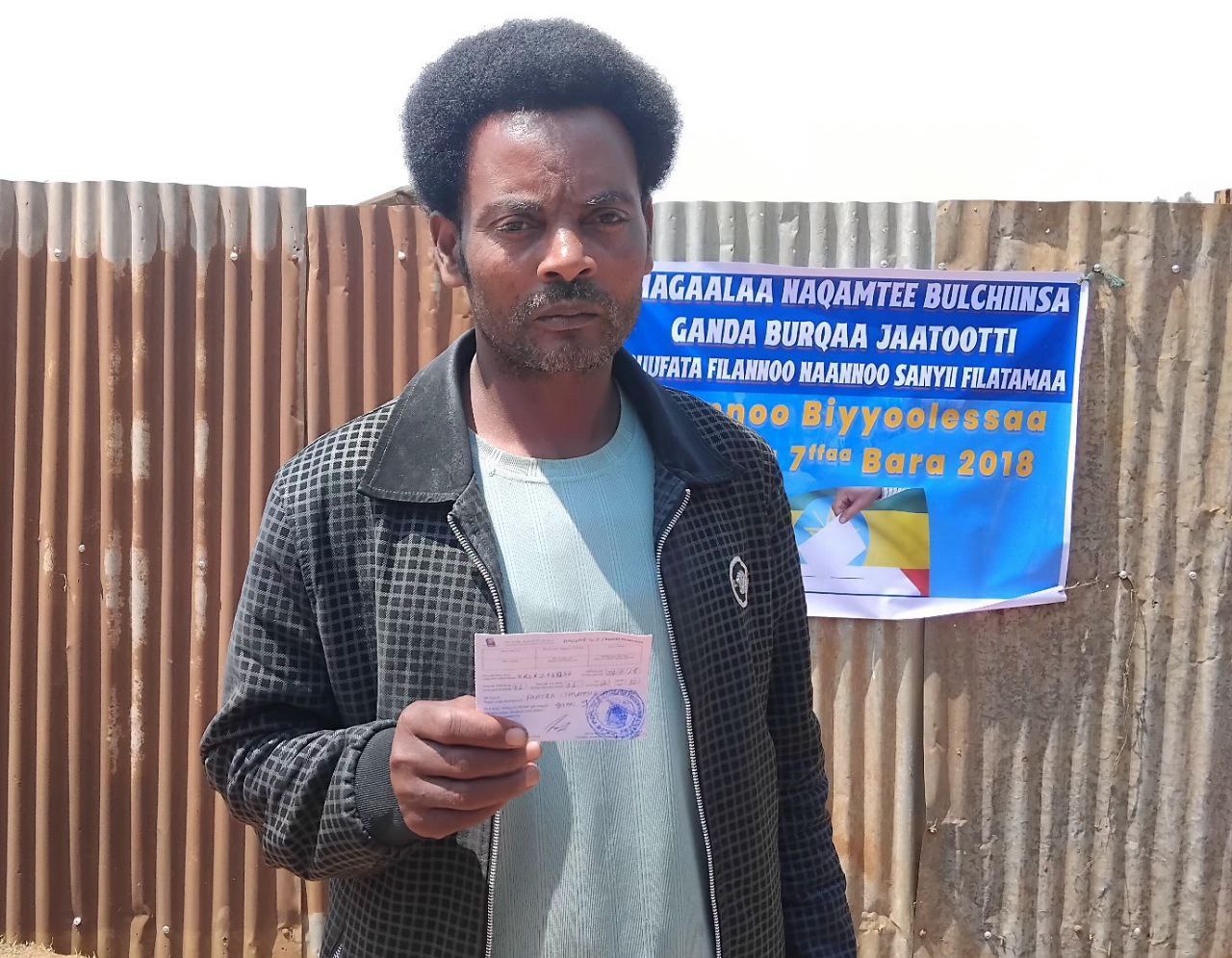 Godina Wallagga Bahaa magaalaa Naqamtee jiraataan ganda Burqaa Jaatoo obbo Fayyisaa Cimdeessaa, filannoo walii galaa Kanaan mirga demokiraasiitti fayyadamuuf kaardii filannoo fudhachuusaanii dubbataniiru.
