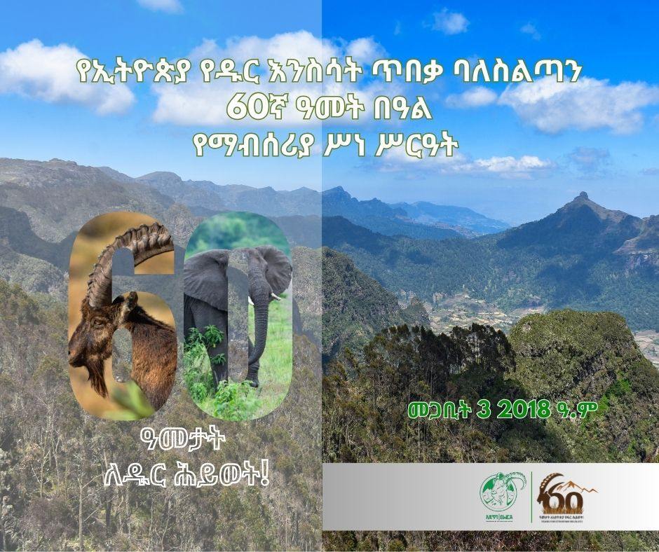 Dhaabbatichi hundeeffama waggaa 60ffaa isaan, eegumsa bineensota bosonaa Itiyoophiyaa fi bakka jireenyaa isaaniif gumaacha inni taasise sagantaalee agarsiisaa fi qophii mariin ni kabajama jedhameera.